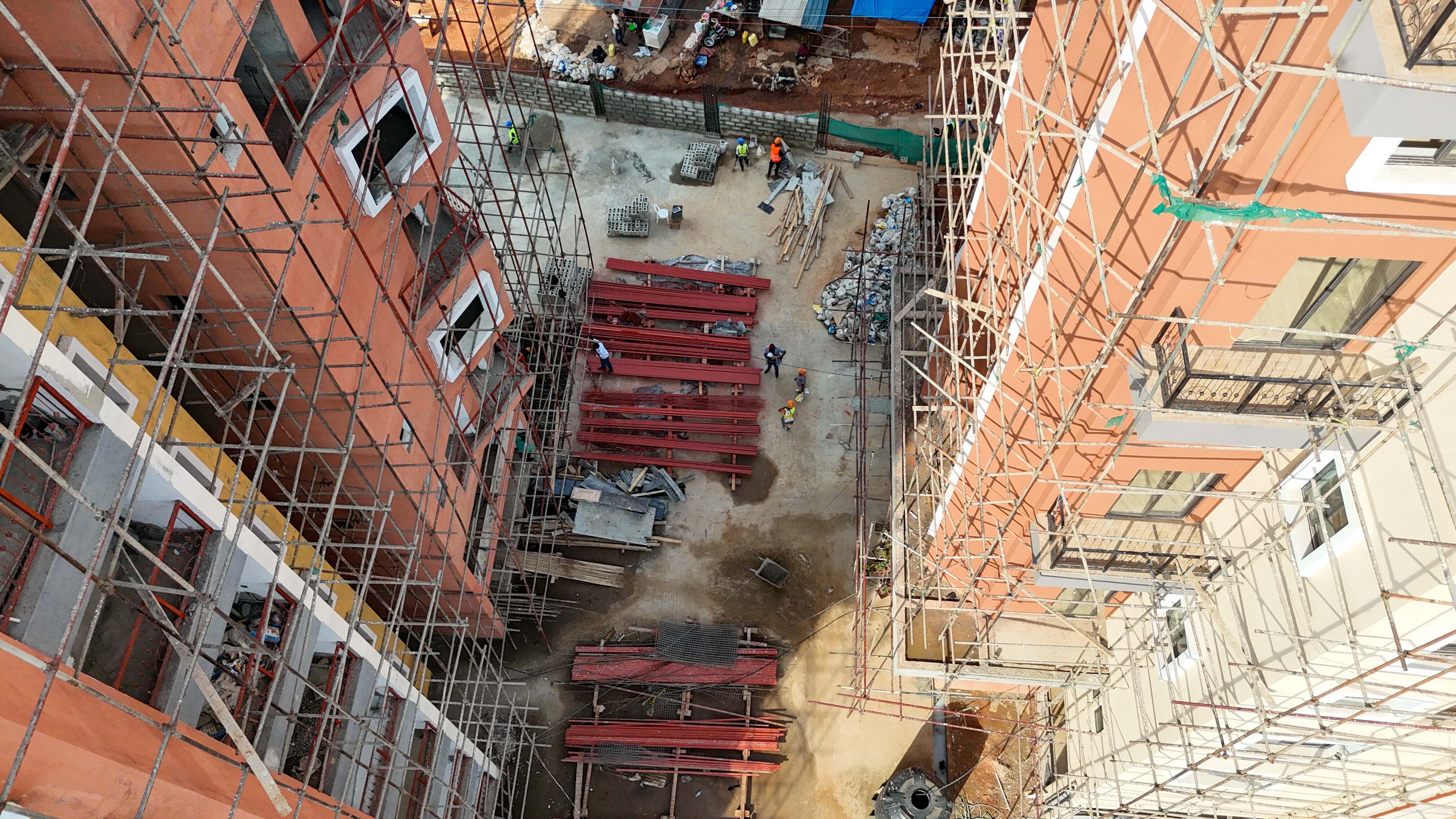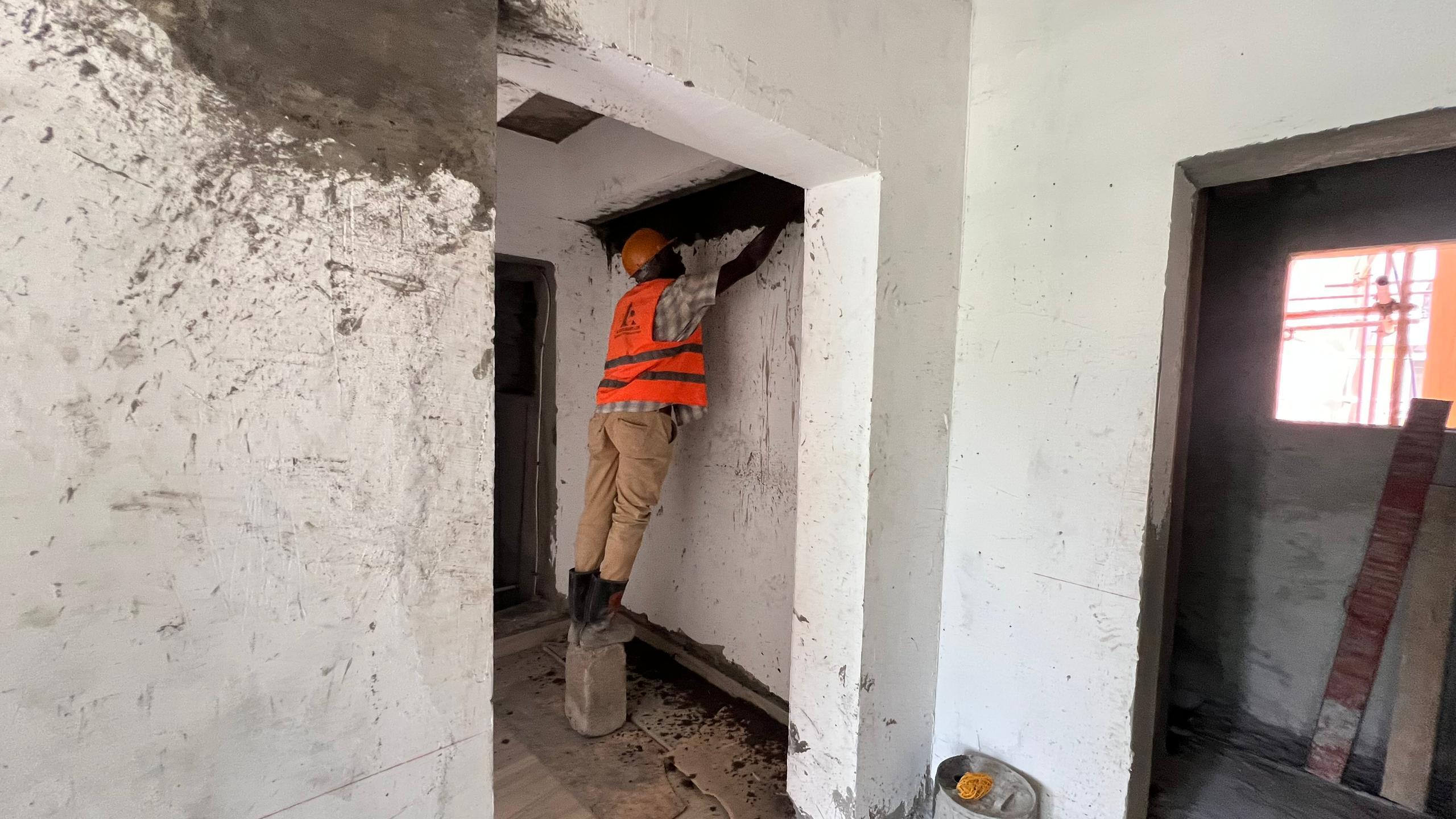 The construction works are advancing steadily. The podium finishing has been successfully completed, ensuring that the structural and aesthetic aspects of this section are in place. Similarly, the terrace floor and wall finishing works have been finalized, adding to the overall completion of external spaces. The exterior painting has also been completed, giving the building its finished external appearance. At present, internal finishing works are actively progressing, focusing on the detailed completion of internal spaces to bring them closer to readiness. In parallel, work on the plot boundary is ongoing, aimed at securing and defining the overall perimeter of the property.