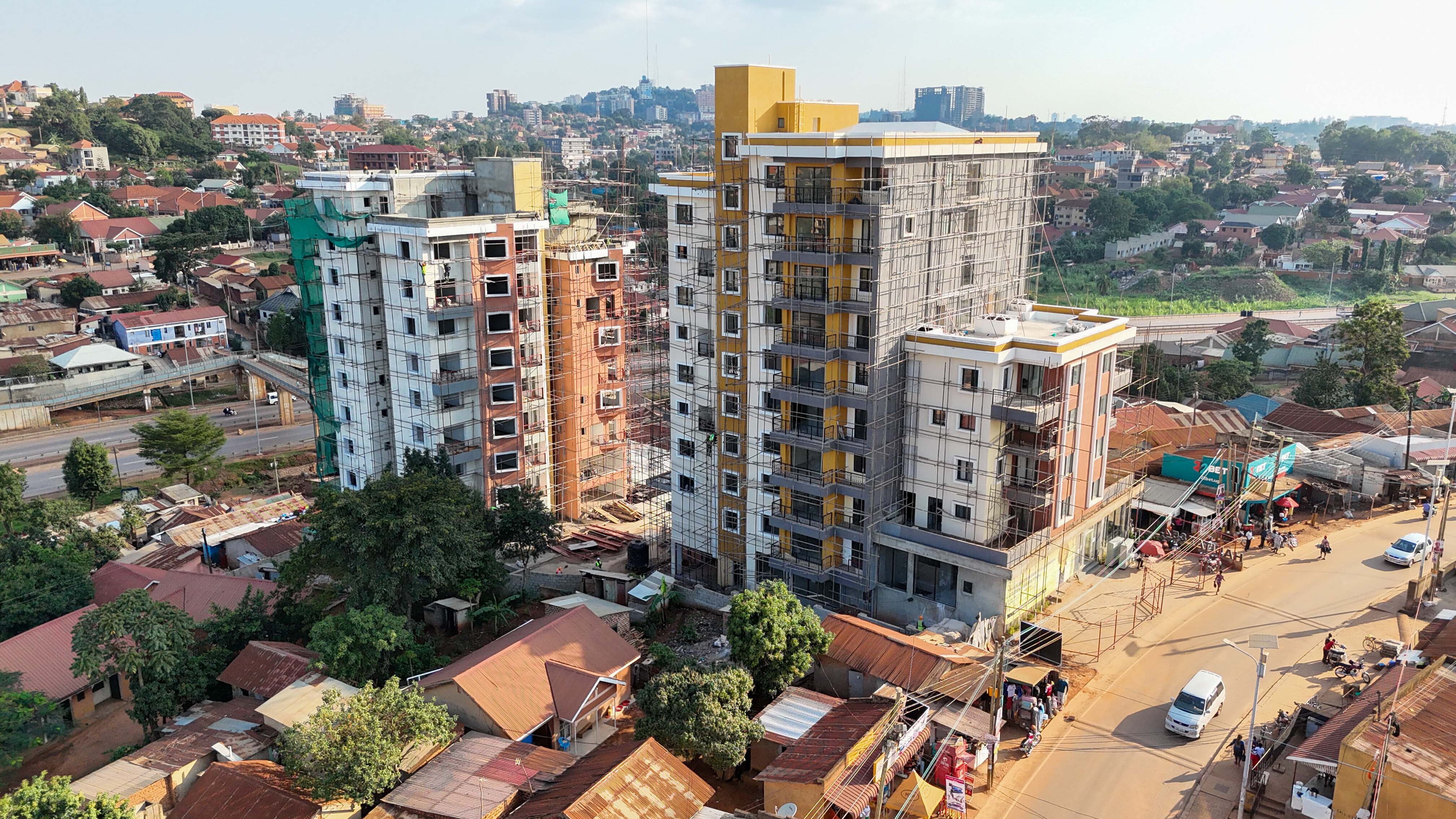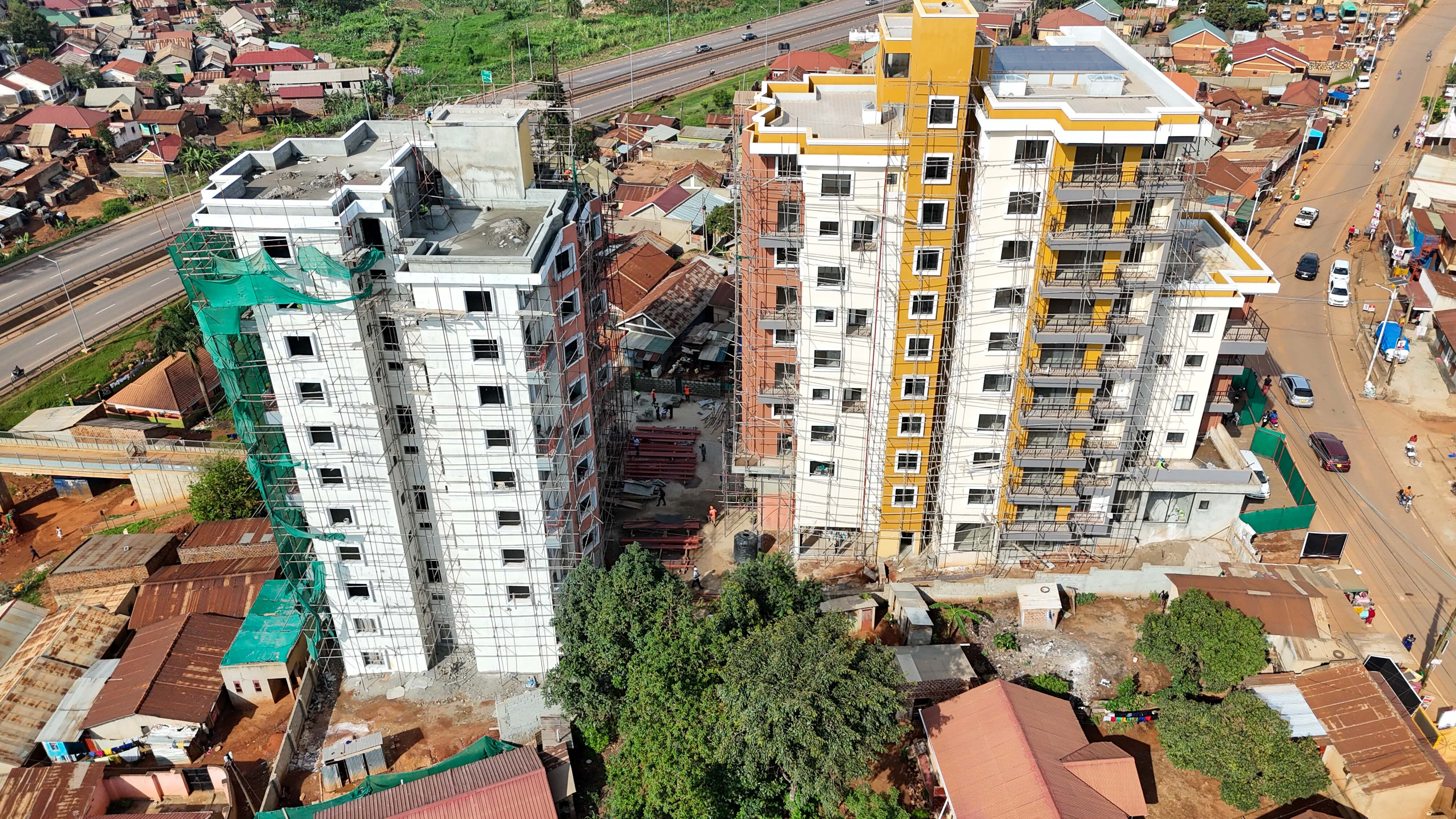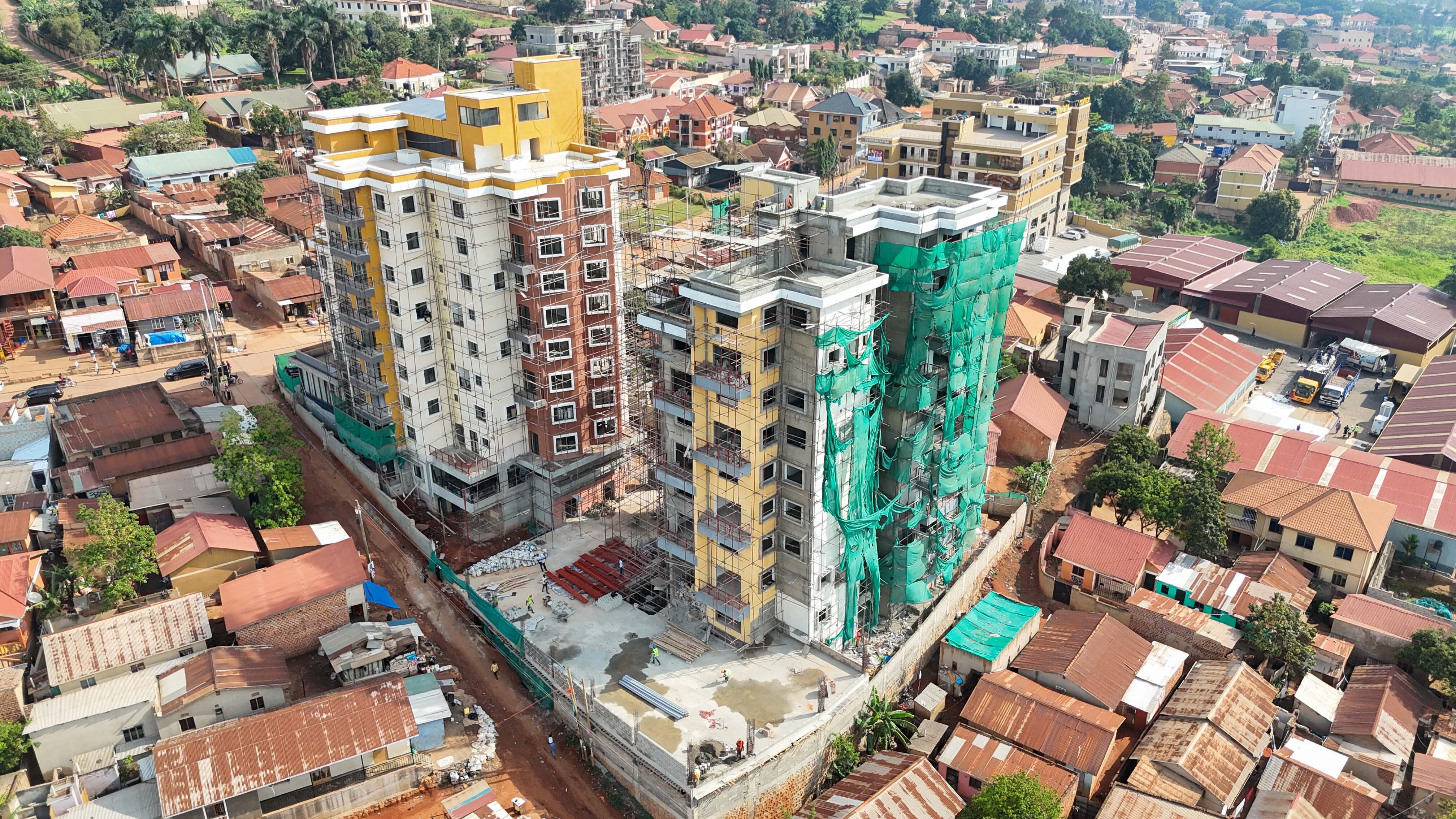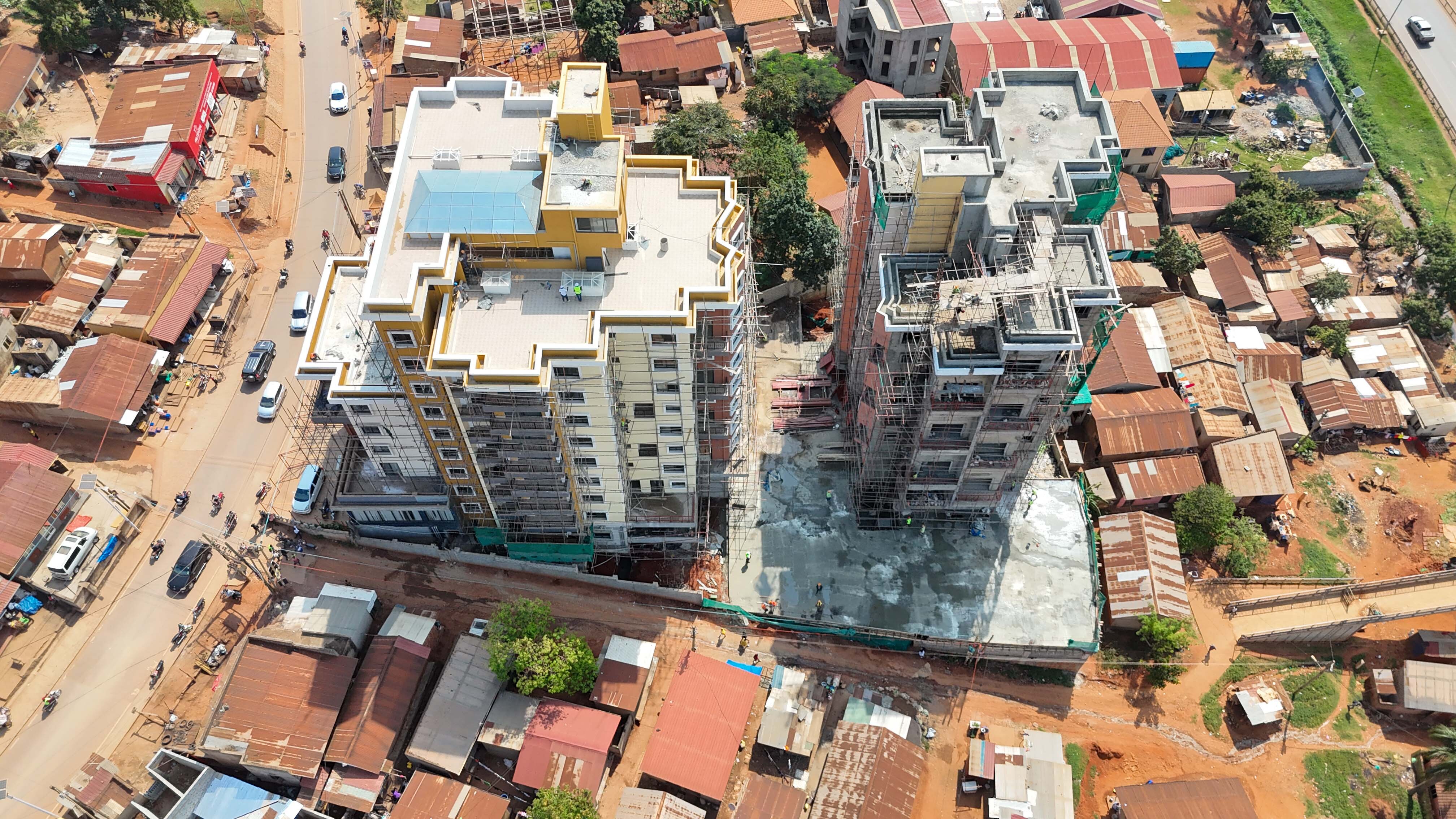 The construction project is moving forward steadily. Podium slab and terrace finishing work are complete, while exterior painting, internal finishes, and plot boundary development are currently in progress.